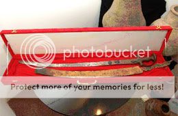 Pedangnya Salahuddin Ayyubi / Saladin, jendral dan pejuang muslim Kurdi dari Tikrit. Pedang ini dibuat dari baja damascus yang sangat keras namun lentur karena memiliki kandungan CNT (carbon nanotubes). Katanya pedang ini sangat tajam, saking tajamnya bisa dengan mudah menembus baju zirah renald de chatilon. Salahuddin terkenal di dunia Muslim dan Kristen karena kepemimpinan, kekuatan militer, dan sifatnya yang ksatria dan pengampun pada saat ia berperang melawan tentara salib. Sultan Salahuddin Al Ayyubi juga adalah seorang ulama. Ia memberikan catatan kaki dan berbagai macam penjelasan dalam kitab hadits Abu Dawud. Sekarang pedang ini merupakan koleksi pribadi Shahhi family in the UAE.Harganya sekitar $555.000
